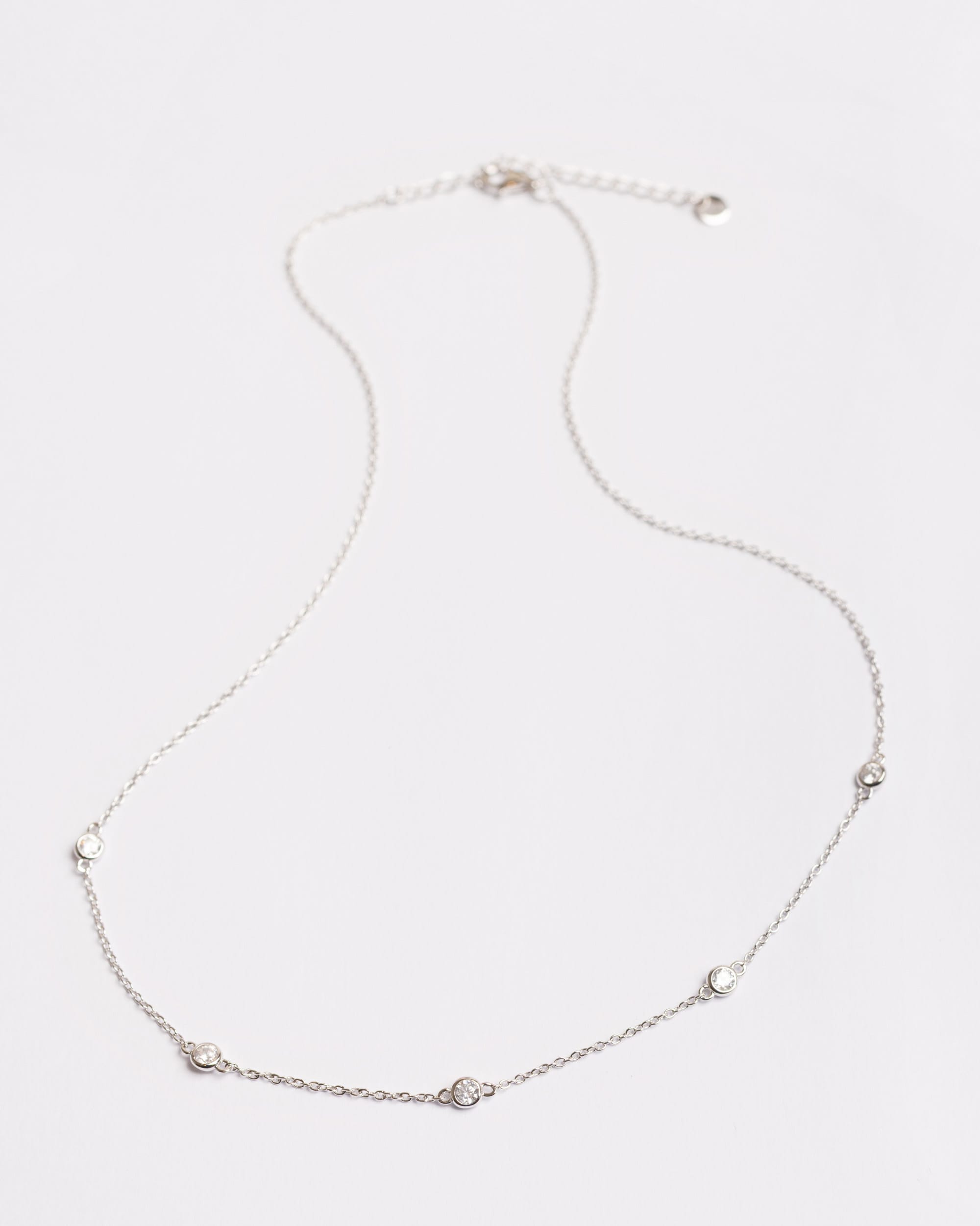 • Details: Fine strand necklace with tiny clear zircon stones scattered across the chain